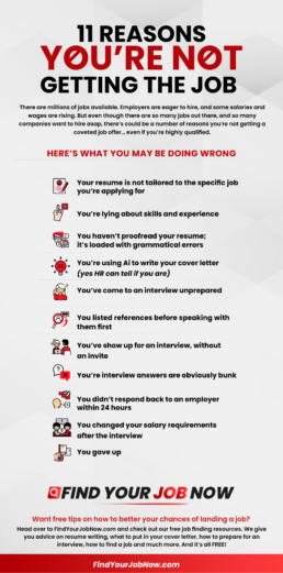 Want free tips on how to better your chances of landing a job? Head over to FindYourJobNow.com and check out our free job finding resources. We give you advice on resume writing, what to put in your cover letter, how to prepare for an interview, how to find a job and much more.